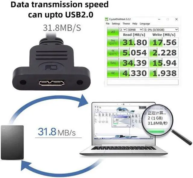 Very easy to use USB 2.0 data cable connected to the Micro USB 3.0.
