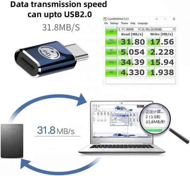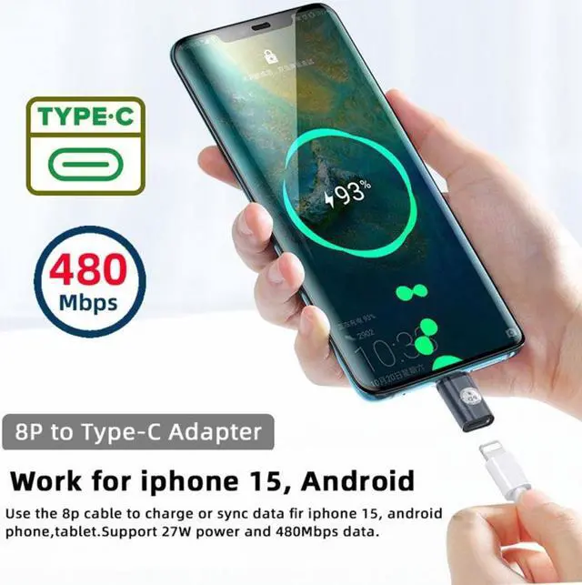 USB-C Type C Male to 8P Female 27W Power 480Mbps Data Adapter Compatible with iPhone 15 & Android& Tablet