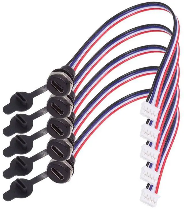 5pcs/set DIY OEM Type C Female Socket to 4Pin Header Cable Pitch= 2.0 mm Panel Mount Type DC 5V Power Data