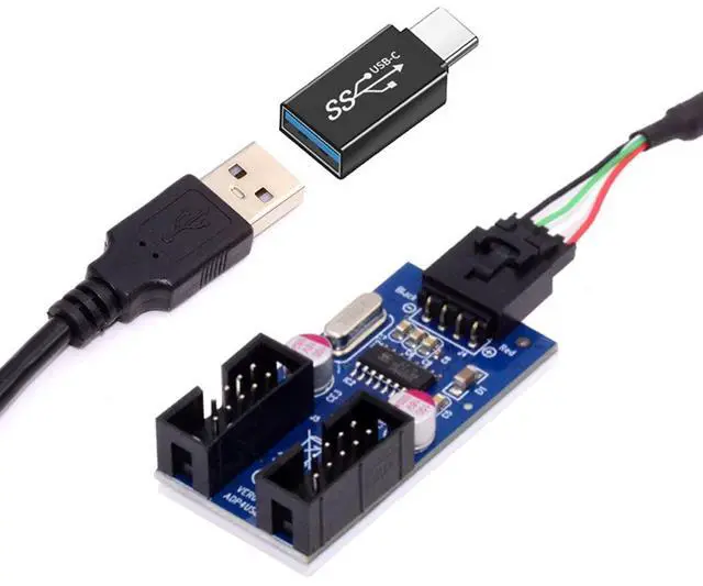 • USB 3.1 Male Type-C USB-C to USB 2.0 Type-A Male 1 to 2 Female Motherboard 9pin 10pinHeader HUB Adapter Port Multiplier