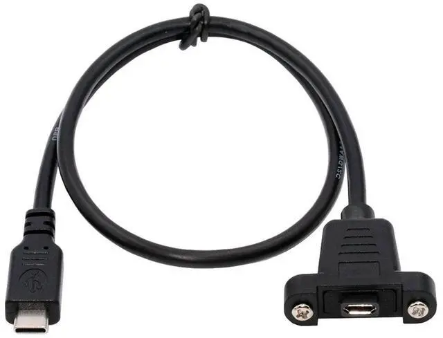 USB 2.0 Micro 5Pin Female to Type-C USB-C Male Power Cable 480Mbps Data with Panel Mount Holes 50cm