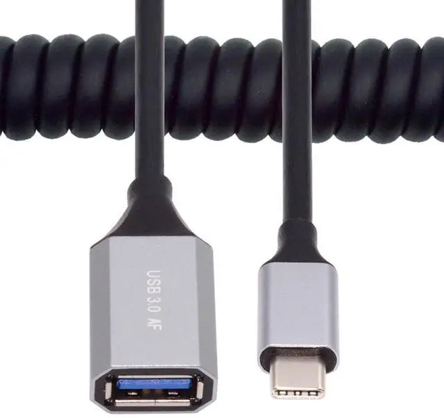 USB-C Type-C Host to USB 3.0 -A Female OTG Stretch Coiled Cable 100cm Extension 5Gbps for Disk Phone Camera Data