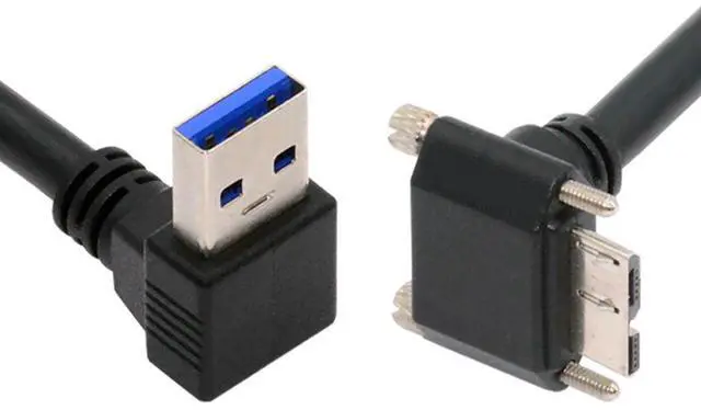 • Down Angled 90 Degree USB 3.0 A Male to Micro-B 3.0 Plug Angled Locking Screw Panel Cable 25cm