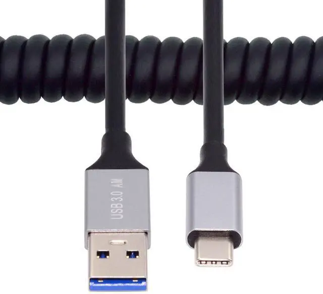 USB 3.0 Type-A Male to USB-C Type-C Male Stretch Coiled Cable 100cm Extension 5Gbps for Disk PhoneCamera Data