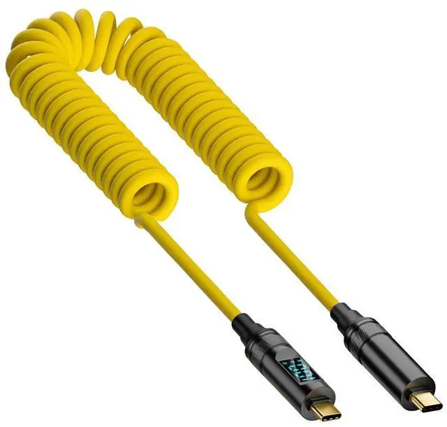 Smart LED Display USB-C USB4 Stretch Coiled Cable 20Gbps 100W 8K for Laptop Disk PhoneType-C Male to Male Cable Power Data