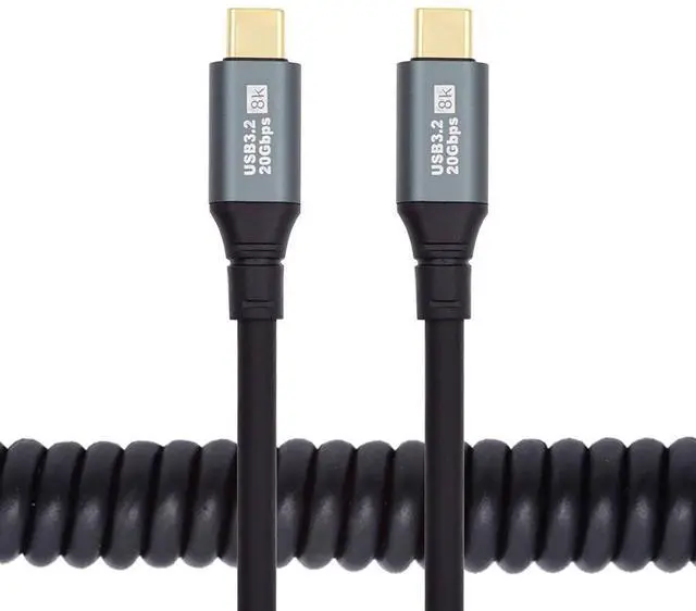 • Stretch Coiled USB-C USB4 Cable 20Gbps 100W 8K for Gaming Keyboard Mouse Type-C Male to Male Cable