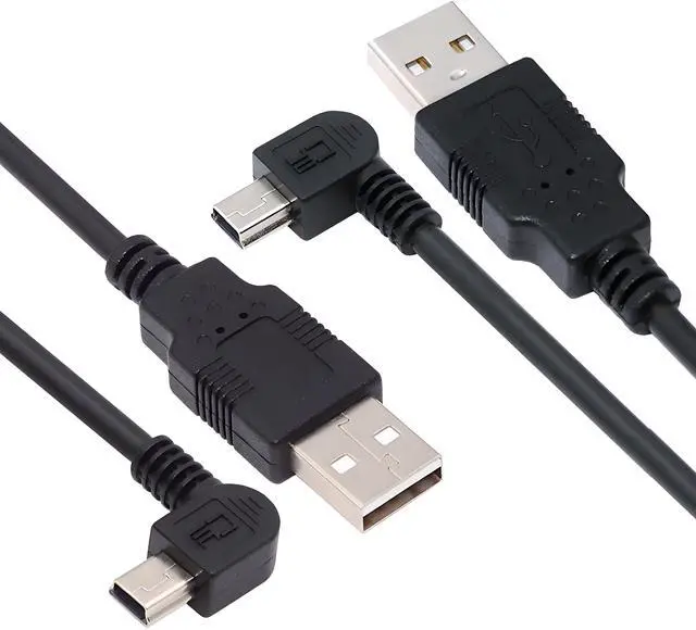 2pcs/lot Left Right Angled Mini USB B Type 5pin Male 90 Degree to USB 2.0 Male Power Data Cable 50cm