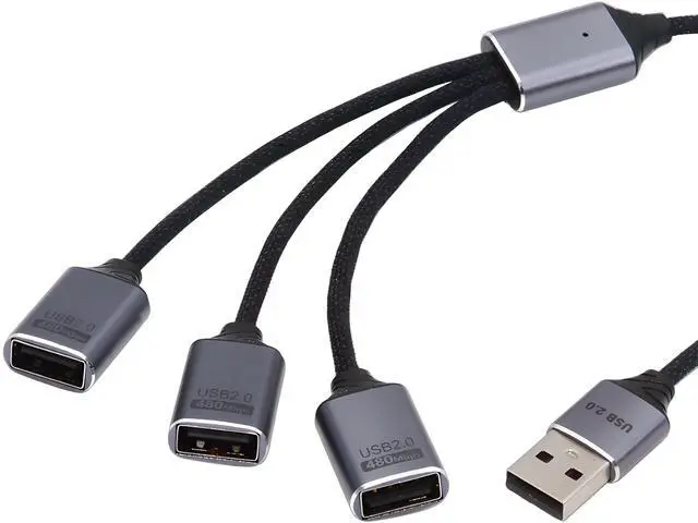 • USB 2.0 to 3 Ports Hub Cable Bus Power Type-A 1 to 3 Data for Laptop Desktop Phone Mouse Keyboard Printer Disk