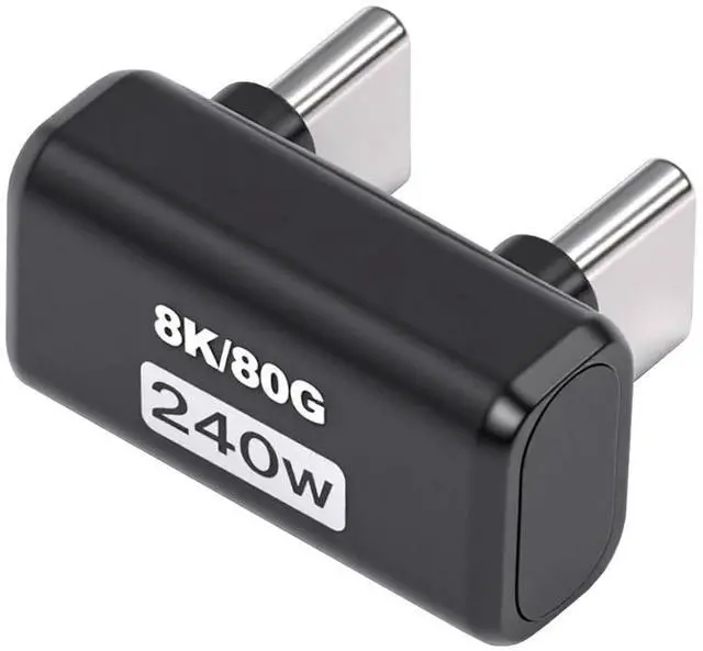 USB 5.0 80Gbps Male to MaleExtension Adapter Opposite U Shape Back Angled with 240W 16K 8K 5K Compatible with USB 4.0 Thunderbolt3/4/5