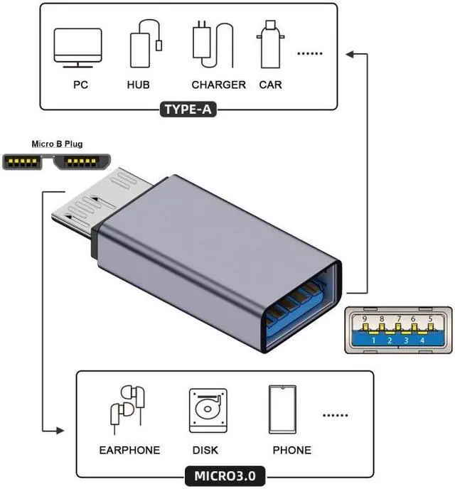 USB-C USB 3.1 Type A Female to Micro USB 3.0 Male Data Adapter 10Gbps Data Power