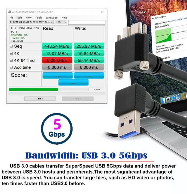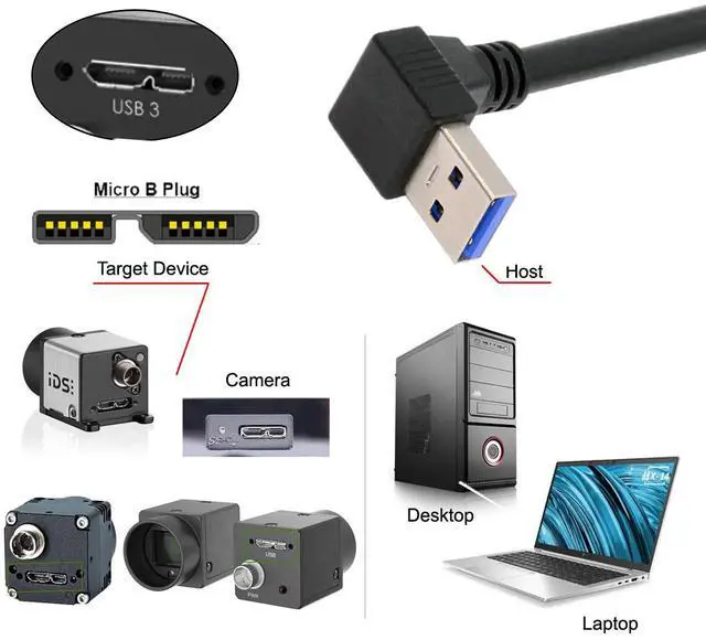 Down Angled 90 Degree USB 3.0 A Male to Micro-B 3.0 Plug Angled Locking Screw Panel Cable 25cmFor many applications, having a secured connection is extremely important. We manufactures a wide selection of high quality USB 3.0 thumbscrew locking cables. This Angled type Cable Allowing you to connect the cable to a female port, even if space around the port is limited. Angled Micro-USB side. You'll want to check your device to see which way the cable would exit when plugged in. Our newest design in USB to Micro USB 3.0 cables.