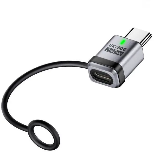 90 Degree USB 5.0 80Gbps Male to Female Straight Extension Adapter with Lanyard Keychain 240W 16K 8K 5K Compatible with USB 4.0 Thunderbolt3/4/5