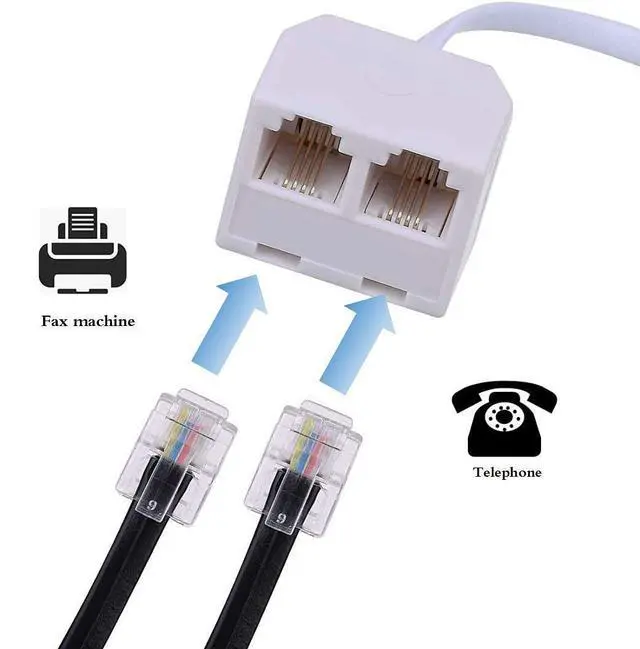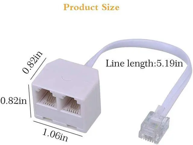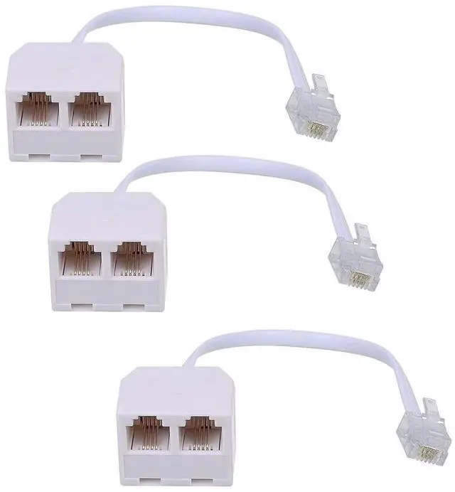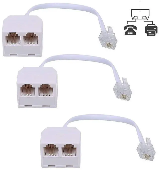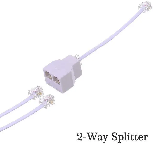 Two Way Telephone Splitter, Male to 2 Female Converter RJ11 6P4C Durable Phone Jack Splitter: Durable material help you keep good singal delivery. Easy to Use: Two way telephone Splitter is very simple to use. Plug the adaptor into the RJ11 phone socket and plug your RJ11 cables (not supplied) into the adaptor. Package Includes3 pack white telephone splitter(One end is 6P4C male plug and the other end is two 6P4C RJ11 sockets).