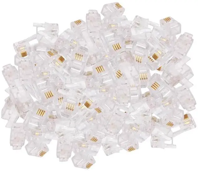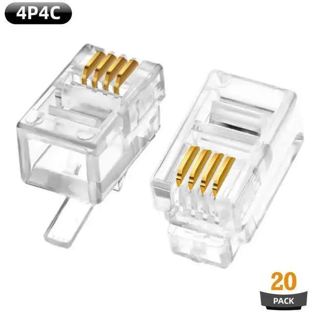 RJ9/RJ10/RJ22 4P4C Male plug (4 Position 4 Conductor), Compatible with Both Solid and Stranded Wire RJ9 telephone / fax plugmake the telephone cable using this plug. gold plated contact leads for better data transmitting and higher signal strength. telephone handset cord plugs offer support for phone,fax or voice applications in home or office abling systems.