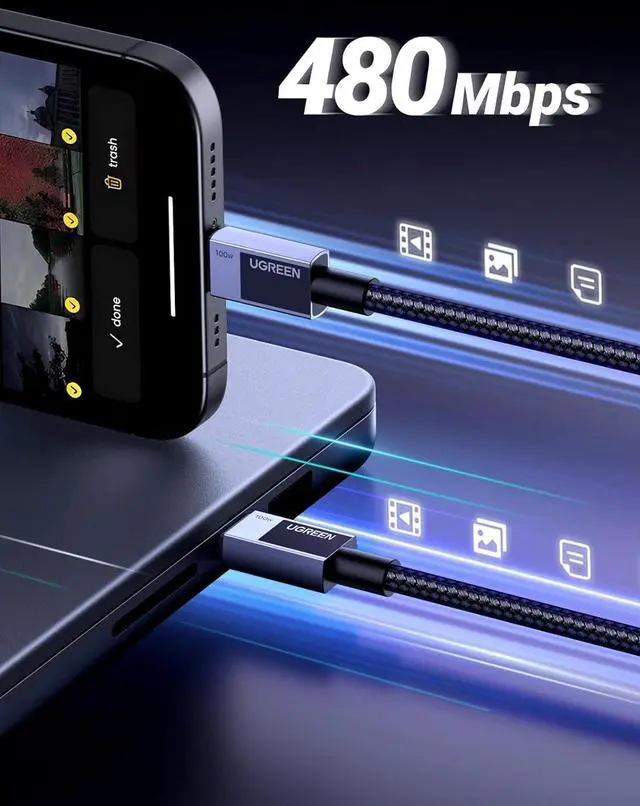 1. 100W FAST CHARGING: Equipped with PD 3.0, UGREEN USB C cable can achieve 100W fast charging, which can charge an iPhone 15 from 0% to 60% in 30 minutes and a MacBook Pro from 0% to 42% in 30 minutes