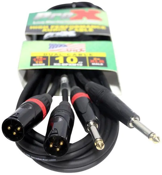 From the bustling energy of live concert stages to the precision required in professional recording studios, the ProX XC-DPXM10 10' Dual 1/4" TS-M to Dual XLR-M Unbalanced High Performance Audio Cable stands as the quintessential connector for audio professionals. Engineered for exceptional sound quality, this cable is the ideal choice for those who demand reliability and durability in their audio connections. Crafted with 20AWG Oxygen-Free Copper (OFC) conductors, the ProX XC-DPXM10 ensures maximum signal transfer, preserving the clarity and richness of the audio signal. The high-performance design is tailored to facilitate pristine sound, making it a top pick for those who prioritize audio fidelity.
