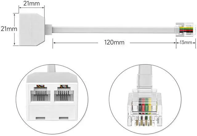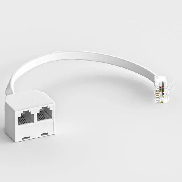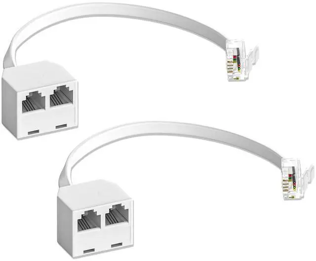 - RJ11 6P4C two way splitters can help you plug in two phone devices to one wall female jack.