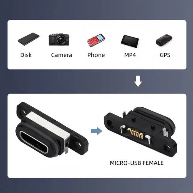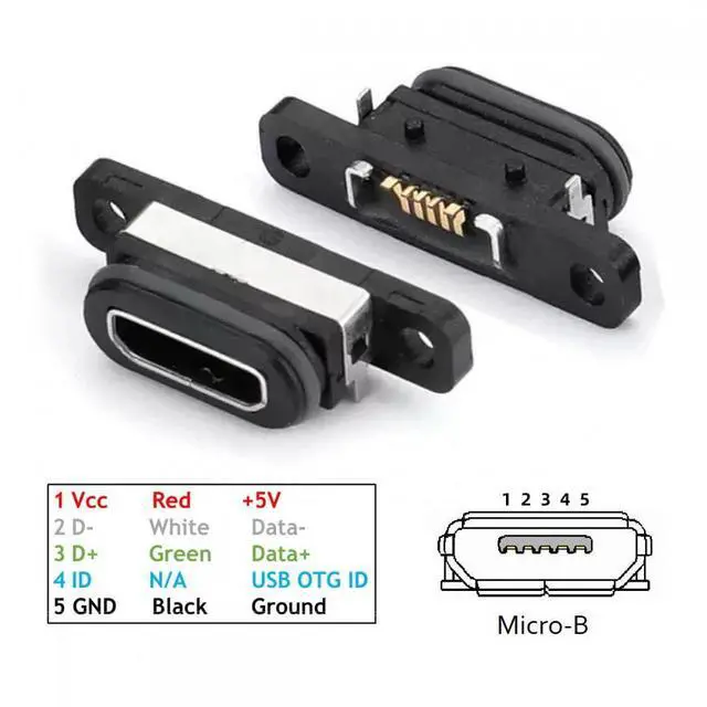 5pcs/set DIY OEM USB 2.0 Micro-B Female Receptacle Socket Connector with Mounting Waterproof SMT Type 480Mbps
