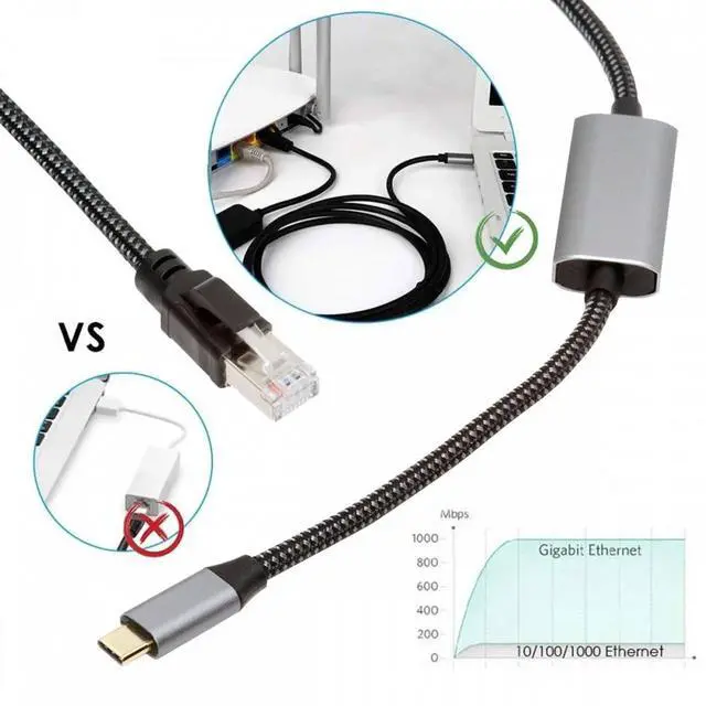 Gigabit High Speed: USB-C to network cable can achieve a data transfer speed of up to 1000Mbps, and downward compatible with 100Mbps/10Mbps networks. Compared to Wi Fi, it can fully play your network performance and provide stable network speed, allowing you to enjoy a smoother experience in playing games, surfing the internet, watching high-definition video streams, uploading, downloading and more.