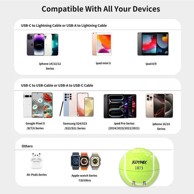 Compatible Phone Models Fast Charging, USB C Wall Charger Compatible with iPhone 17/17 Air/17 Pro Max/ 16/16 Pro/16 Pro Max/16 Plus/ 15 / 15 pro / 15 plus / 15 pro max /14 / 14 pro / 14 plus / 14 pro max / 13 / 13 Mini / 13 Pro / 13 Pro Max / 12 / 12 Mini / 12 Pro / 12 Pro Max / 11 / 11 Pro / 11 Pro Max / XR / X / Xs / XS Max / 8 Plus / 8 / 7 / 7plus / 6 / 6s / 6s Plus / 6Plus / 5s / 5c / 5 / SE(2016) / SE2(2020), i Pad Pro 9.7 inch (2016), i Pad Pro 10.5 inch (2017), i Pad Pro 12.9 inch (2017), i Pad mini / mini 2 / mini 3 / mini 4 (2015) / mini 5 (2019), i Pad Air / Air 2 / Air 3 (2019), i Pad 9.7 inch (2017), i Pad 9.7 inch (2018), i Pad 10.2 inch (2019,7th generation), i Pad 10.2 inch (2020,8th generation), Air Pods 1 / Air Pods 2 / Air Pods Pro, Google Pixel 5 / 5XL / 4a / 4XL / 4 / 3a XL / 3a / 3 XL / 3 / 2 XL, Galaxy S20 / S10 / S10e / S10+ / S9 / S8, Note 9 / 8, LG G5 / G6 / G7 / V20 / V30 / V40 / V50 / ThinQ and more