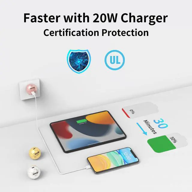 | Compatible Phone Models | Fast Charging, USB C Wall Charger Compatible with iPhone 17/17 Air/17 Pro Max/ 16/16 Pro/16 Pro Max/16 Plus/ 15 / 15 pro / 15 plus / 15 pro max /14 / 14 pro / 14 plus / 14 pro max / 13 / 13 Mini / 13 Pro / 13 Pro Max / 12 / 12 Mini / 12 Pro / 12 Pro Max / 11 / 11 Pro / 11 Pro Max / XR / X / Xs / XS Max / 8 Plus / 8 / 7 / 7plus / 6 / 6s / 6s Plus / 6Plus / 5s / 5c / 5 / SE(2016) / SE2(2020), i Pad Pro 9.7 inch (2016), i Pad Pro 10.5 inch (2017), i Pad Pro 12.9 inch (2017), i Pad mini / mini 2 / mini 3 / mini 4 (2015) / mini 5 (2019), i Pad Air / Air 2 / Air 3 (2019), i Pad 9.7 inch (2017), i Pad 9.7 inch (2018), i Pad 10.2 inch (2019,7th generation), i Pad 10.2 inch (2020,8th generation), Air Pods 1 / Air Pods 2 / Air Pods Pro, Google Pixel 5 / 5XL / 4a / 4XL / 4 / 3a XL / 3a / 3 XL / 3 / 2 XL, Galaxy S20 / S10 / S10e / S10+ / S9 / S8, Note 9 / 8, LG G5 / G6 / G7 / V20 / V30 / V40 / V50 / ThinQ and more |