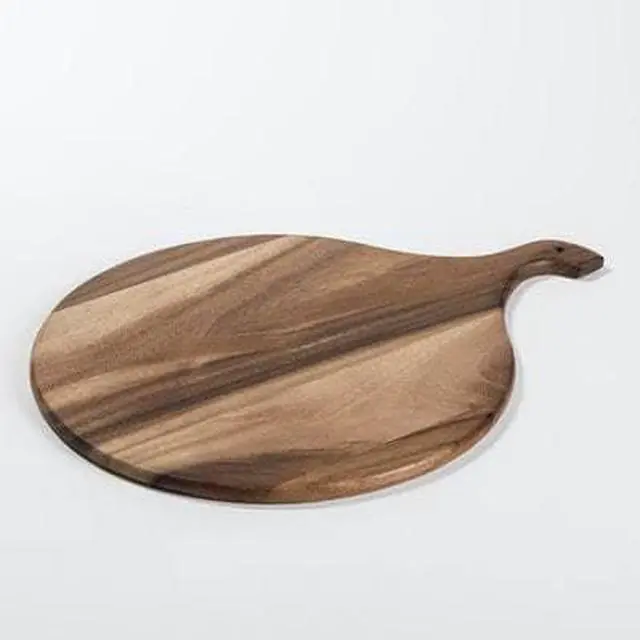 • Acacia wood cutting/ charcuterie board featuring a beautifully shaped handle.