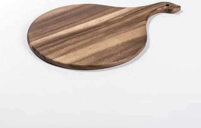 • Acacia wood cutting/ charcuterie board featuring a beautifully shaped handle.