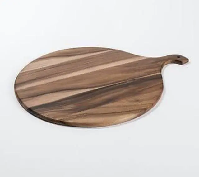 • Large Round Acacia wood cutting/ charcuterie board featuring a beautifully shaped handle.