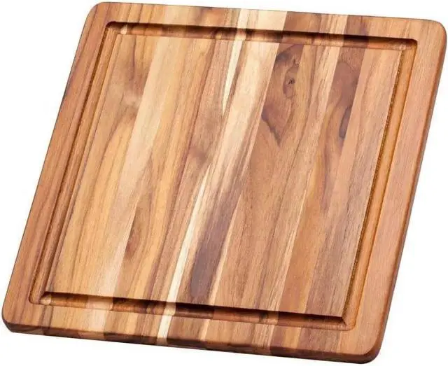Equip yourself with a cutting board thatll remain beautiful after years of use with the Essential Cutting and Serving Board by TeakHaus! From the Essential Collection, which features pieces designed with the perfect balance between functionality and style, this cutting board is crafted from FSC-certified, stain-resistant teak wood thatll never dull your knives. With a slim, lightweight construction and a stylish edge-grain surface, this piece seamlessly transitions from a cutting board to a serving board for an elegant presentation. Plus, it has a convenient juice canal along the border to catch excess liquids from ripe tomatoes, juicy meats, and other foods. Slice meats, veggies, and cheeses or serve up a dazzling charcuterie spread with the TeakHaus Essential Cutting and Serving Board today.