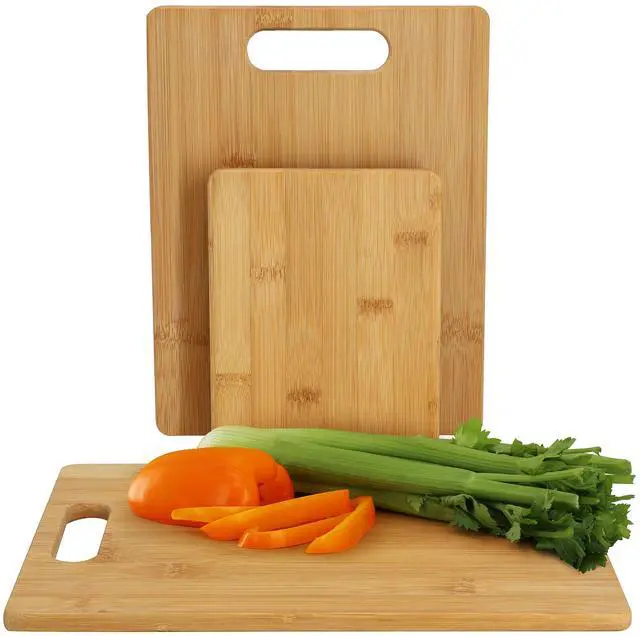 Bamboo is an eco-friendly choice, as it is a sustainable and renewable resource. It is also known for its durability and resistance to knife marks, ensuring these boards will last through years of use. Additionally, bamboo is lightweight, making the boards easy to handle and store. The set is made from premium bamboo wood and includes three cutting boards of varying sizes. To maintain their quality, the boards should be hand washed with warm water; avoid using a dishwasher. This MegaChef set is perfect for those seeking a durable, eco-friendly, and stylish addition to their kitchen.