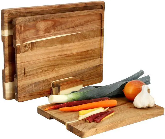 Designed for convenience and organization, the MegaChef Acacia Wood Cutting Board Set comes with a storage stand that allows you to neatly store the boards on your countertop, keeping them easily accessible while saving space. The integrated bottom handles on each cutting board make lifting and moving the boards simple and efficient, while the set's sturdy construction ensures long-lasting use. Perfect for home chefs and cooking enthusiasts, this 3-piece cutting board set is a must-have for preparing and serving meals in style. Whether you're slicing, dicing, or chopping, the MegaChef Acacia Wood Cutting Board Set offers exceptional performance, durability, and aesthetic appeal for any kitchen.