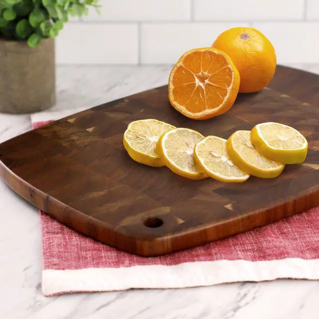 Perfectly sized at 15.5 by 10.5 inches, this versatile board provides ample space for chopping vegetables, carving meats, or presenting cheeses and appetizers. Its smooth finish and sturdy construction make it easy to handle and clean, while the acacia wood's natural resistance to water and staining helps maintain its elegant appearance over time. Whether for everyday cooking or entertaining guests, the MegaChef cutting board combines functionality, style, and quality craftsmanship in one essential kitchen tool.