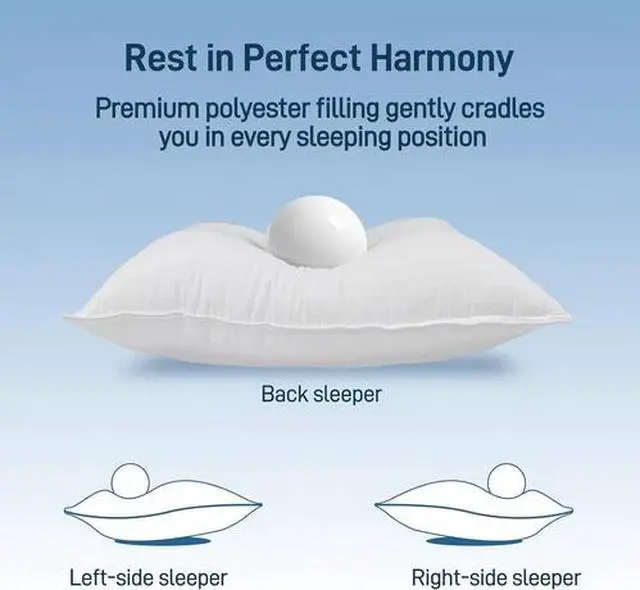 Hypoallergenic Cotton Cover with down Alternative Filling, King Size Soft Pillow, Luxury Hotel Quality, Ideal for Side, Back and Stomach Sleepers, Oeko-Tex Certified