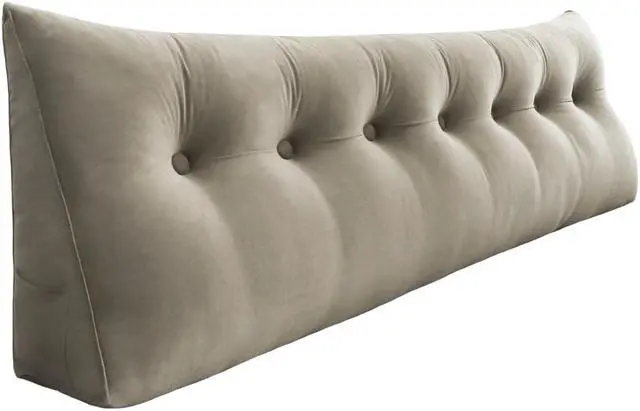 This alternative pillow headboard has all standard sizes and can fit across any standard bed as comfortable but firm back support. Its puffy wedge shape not only enables the stable standing against the wall but also fills up the interspace between back and wall. The decorative button tufts tightly hold the polyester fiberfill inside of the pillow insert, which determines long-term use without collapse or deformation. The headboard cover is detachable and washable.
