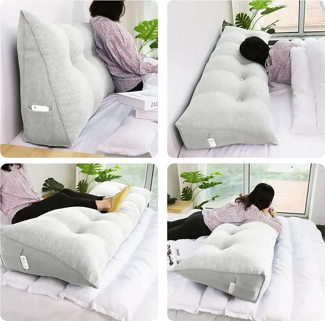 Rucener Triangular Reading Pillow Large Bolster Headboard Backrest Positioning Support Wedge Pillow for Day Bed Bunk Bed with Removable Cover