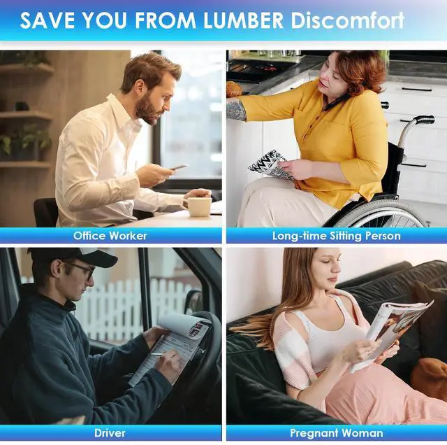 LOVEHOME lumbar support cushion is ergonomically designed to fit the streamline of your spine curve, contoured design effectively helps realign your back, hips and spine, it can sufficiently alleviate the pain & fatigue of lumbar & vertebra area.