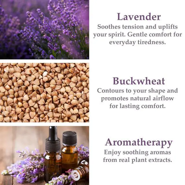 COOLING BUCKWHEAT: The neck bolster is filled with natural buckwheat which allows cool air to circulate and keep you comfortable all night long. It is the best pillow for neck pain and headaches.