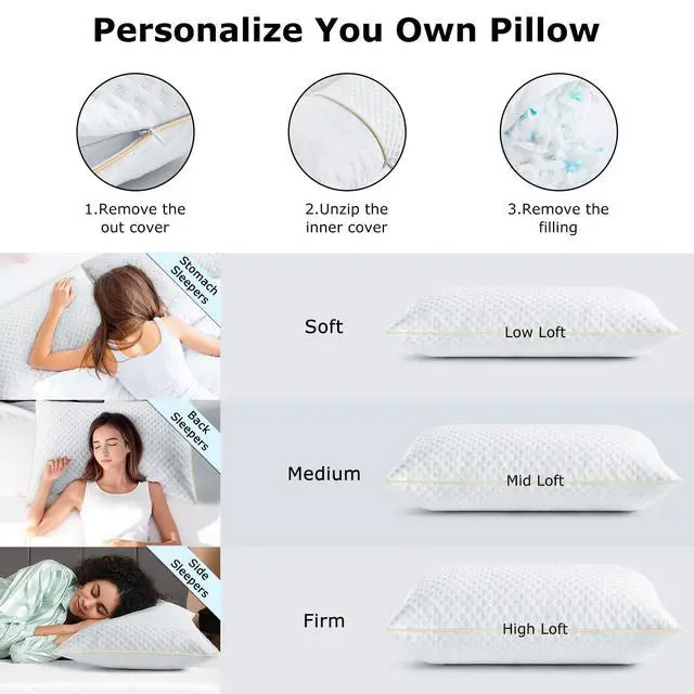 Adjustable Memory Foam Firm Pillows with Breathable Pillow Cover
