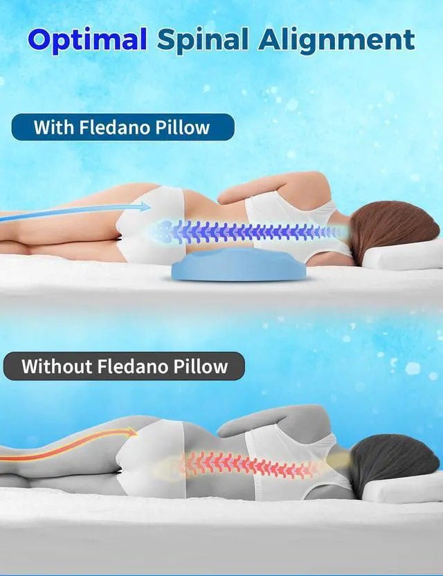 Lower Back Pain Relief While Sleeping Specifically designed as a lumbar support pillow for bed, this pillow fits under your lower back to fill the natural gap between your body and mattress. Helps relieve lower back pain, sciatica discomfort, and morning stiffness for side and back sleepers.