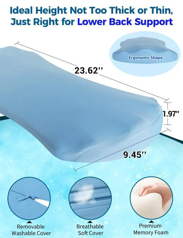 Lumbar Support Pillow for Bed Memory Foam Lower Back Pain Relief Pillow for Sleeping, Ergonomic Lumbar Pillow for Side & Back Sleepers, Sciatica & Hip Pain Relief, Washable Cooling Cover