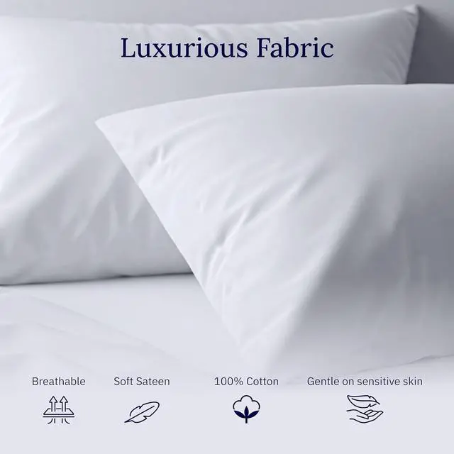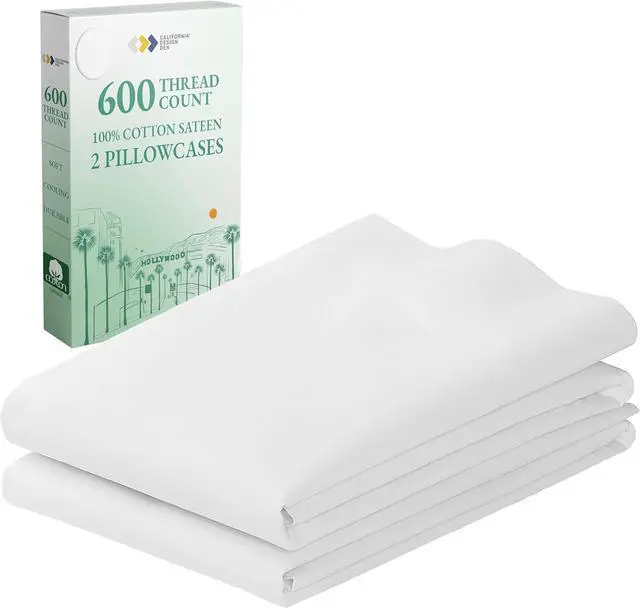 SMOOTH & CRISP 100% COTTON SATEEN PILLOWCASES TO REMIND YOU OF FIVE-STAR HOTELS: While many make exaggerated claims of egyptian-cotton quality we deliver authentic 100% cotton sateen that is loved by people for its smooth cool and crisp feeling. Now rest your head on the bed of clouds with our 600 TC white pillowcase set that makes you feel like youre spending a night in a five-star hotel every day. SECURE FIT THAT SLIDES EASILY ONTO YOUR PILLOWS: Its a match! Our two-piece white standard/queen pillowcases set (21 W x 32 L) fit the pillows between 20 W to 26 - 30 L. The pillowcases standard set of 2 is roomy and slip in easily. The 4-inch gorgeous hem ensures the pillows are tucked in for a neat look. Complete the look with our 600 TC sheet set that complements any room decor and lends elegance to it. KEEPS YOU COOL AND BREATHABLE IN ALL SEASONS: Do you get hot and sweaty while sleeping? Switch to our 100% white cotton pillowcases that keep you cool in hot summer months and warm during chilly winter nights. Our all-natural breathable cooling pillowcase set is moisture-wicking and regulates bodys temperature so you can sleep comfortably.