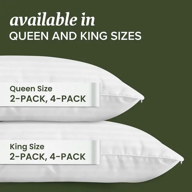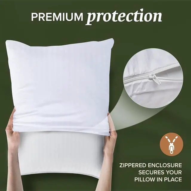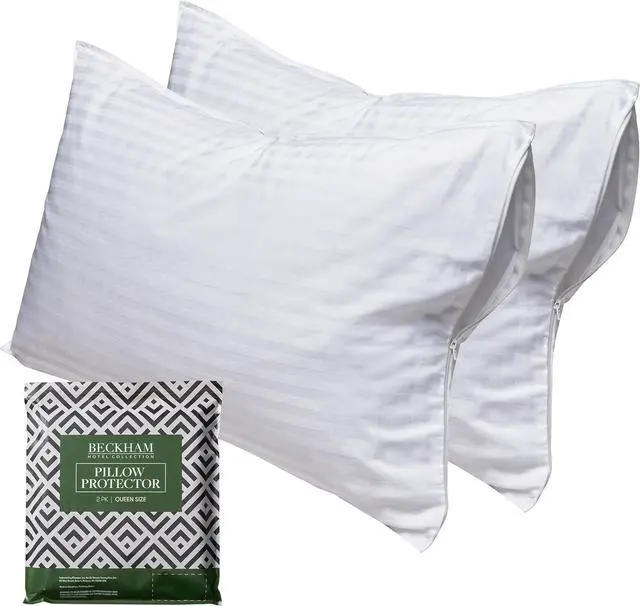CottonPACK OF 2 - Fits (2) Queen size pillowsNOISELESS - Sleep in silence pillow covers create an efficient barrier to protect your pillows and keep them good as new for longerZIPPERED - The secure Micro-Zipper on our pillow protector creates a highly effective barrier against dust particles passing through and setting up home in your pillowsSOFT - Crafted from cotton with a breathable soft material our zippered pillow cover surrounds and protects for a peaceful nights sleepACCIDENTS HAPPEN - Its reassuring to know our pillow protector covers are machine washable for a fuss-free clean up hang to dry. SAFE & SOUND - These pillow protectors are made in an OEKO-TEX Standard Certified factory that ensures textiles meet high safety and environmental standards.