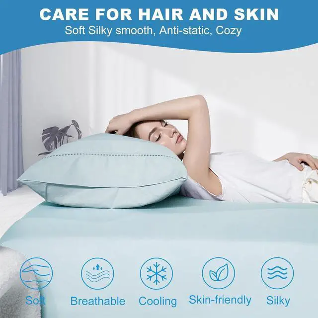 Stay Cool Pillowcase - Our cooling pillowcase is made of upgraded cooling fabric breathable moisture-wicking and anti-static properties. Absorbs sweat and heat better than cotton pillowcases perfect for hot sleepers you won't feel overheated while sleeping helps relieve anxiety and irritability sleeps more comfortably and never experiences night sweats or insomnia againGentlemanly Style on Hair and Skin - Cooling pillowcase is silky and lightweight skin-friendly soft and breathable with natural anti-static properties allowing skin and hair to glide very gently and freely over the pillowcase which effectively reduces friction between your hair and skin thus reducing facial wrinkles and knots and making your hair smoother and frizz-free every morning.