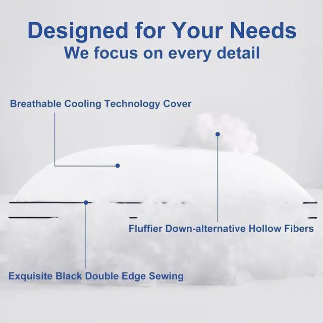 ? Soft and Breathable MaterialThe pillows are made of premium 3D+7D breathable microfiber material which has better ventilation and heat dissipation and prevents you from overheating during sleep. The sleeping surface of the pillows are smooth and skin-friendly creating a relaxed and comfortable sleeping environment.? Optimal SupportErgonomic design combined with mechanics 40°elevation fully matches the physiological curve of the head and neck. The appropriate support force can better support the head shoulders and neck. Whether you choose to sleep on your back side or stomach it can help balance and relieve neck pain and shoulder stiffness to the greatest extent possible.