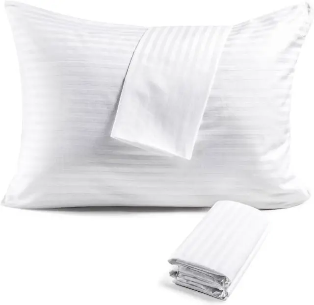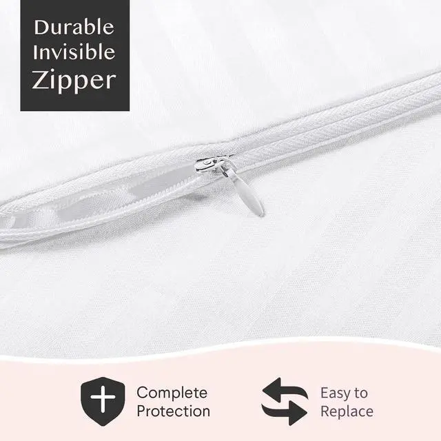 OEKO-TEX certified (No: 23. HCN. 66795) for safe use by families hotels and those with special skin care needs. The ultra-soft fabric ensures our bed pillow cover breathable comfort and quiet while protecting pillows from daily wear. Durable Invisible Zipper DesignFeatures a silent rust-proof zipper that seamlessly closes to keep pillows clean without bulkiness. This zippered king size (20x36) pillow protector fit most bed pillows and maintain a sleek hotel-grade appearance. The 600TC cotton resists pilling ensuring durable protection for adults kids and guest bedding. Machine Washable & Long-Lasting SoftnessDesigned for convenience these white protective pillowcase covers retain their high-quality texture even after repeated washes. The high-density 600TC weave delivers cloud-like softness combined with breathable cotton fibers that regulate temperature. Our 20 inch by 36 inch pillow protector is machine washable without pilling or fading retaining whiteness even after 50+ washes. Versatile Sets for Every NeedChoose from set of 2 4 or 6 pillow cover in king size to match your home hotel or nursery requirements. Each set includes identical white striped pillow protector for a cohesive look across multiple beds. FAUNNA Quality Assurance Backed by a 1-year warranty our cotton pillowcase protector with a zipper combines functionality with elegance.