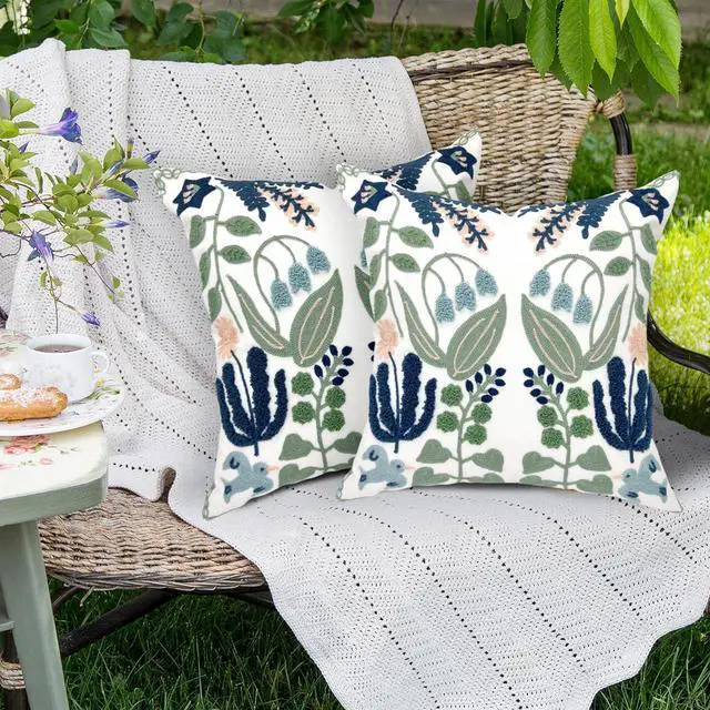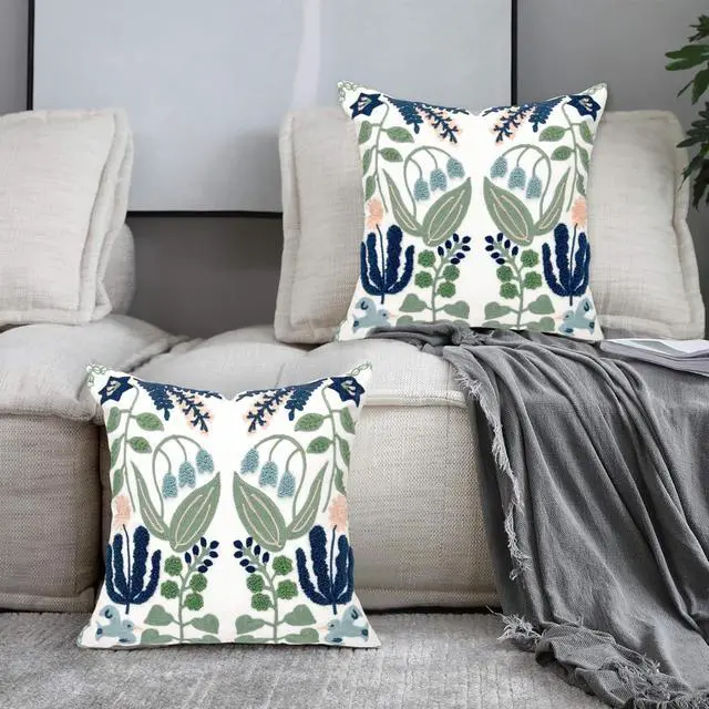 Size: 18 x 18 Inch / 45 x 45 cm set of 2pcs Fits for 18 x 18 to 20 x 20 cushion inserts. Hidden smooth Zipper for easy enclosure. Suitable for sofa bed living room outdoor couch cottage decor. Beautiful Gifts for family and friends. Perfectly blends in with any home decor. Exquisitely Vibrant Design & Gorgeous Stitching: The more you look closely at these throw pillow covers the more you will fall in love with its wonderful embroidery and perfect craftsmanship. An excellent choice for adding color and personality to your living space.