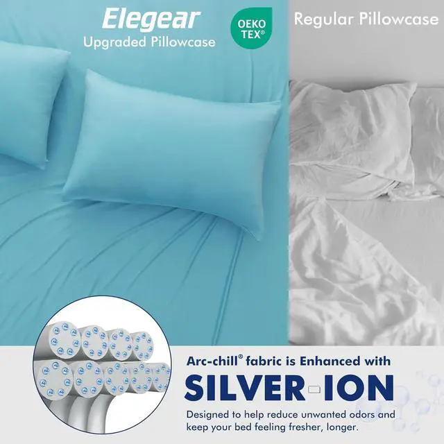 Instant CoolingElegear cooling pillowcase featuring an Arc-Chill 3.0 cool tech with Q-Max > 0.5 that instantly reducing surface temperature by up to 9°F cradling you in the comfort sleep zone. Perfect for athletes menopausal women and stressed workersthese ultra-breathable cooling pillow cases for hot sleepers deliver continuous refreshing coolness. Wake up truly refreshed never drenched! Odor ResistantCombat pillow odors at the source! Unlike ordinary pillowcase our silver infused pillowcase uses self-cleaning silver ions to create a continuously fresh and clean sleep surface actively preventing odor buildup. Experience noticeably reduced morning smells and truly clean comfort that lasts.