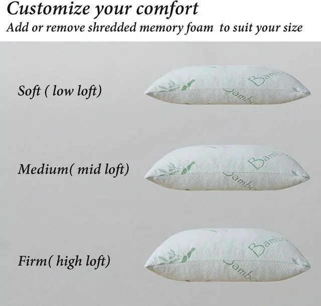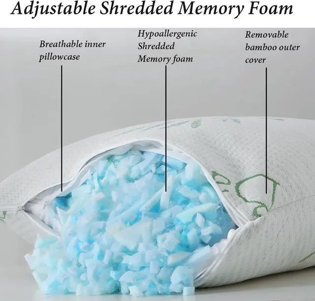 ? Shredded Memory Foam Bed Pillow Sets: If you are looking for firm yet soft support bed pillows these memory foam pillows king size wit mix of Shredded memory foam and down alternative filling will give you prefect amount of firmness and supportive.? Adjustable Height and Support for