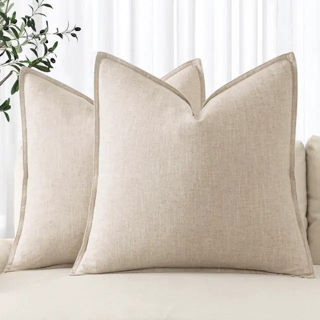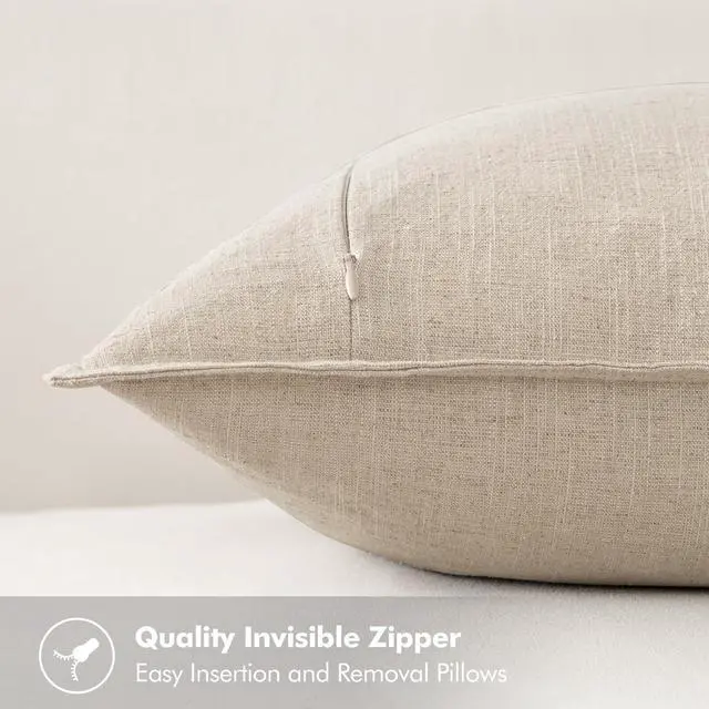 Natural Linen Fabric Made of grade 70% ramie linen and 30% cotton. Natural linen fabric makes it soft comfortable and breathablegood workmanship tightly sewn. Color may be different in different light or on different screen. Design with Flange Edges Boho pillow covers have flange at the edges. All fabric edges are sewn well to prevent fraying. The combination of the pure color and the classic linen edge makes the pillow covers more idyllic. Hidden ZipperHidden zipper is sewn on the back so that your pillows can easy insert or remove. It also makes covers look more elegant.