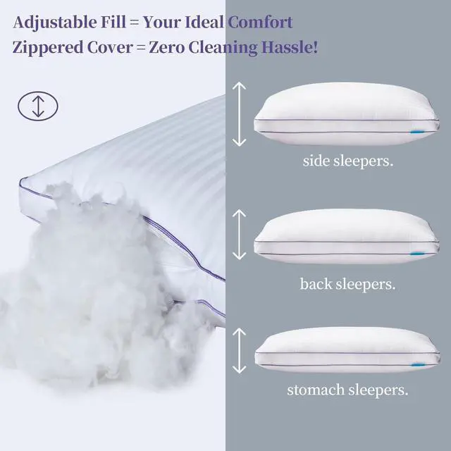 Personalized Comfort: Each pillow comes with a zipper that allows you to adjust the filling for a cloud-like soft pillow or a firm pillow feel. The breathable shell and down-alternative fill also make these excellent cooling pillows for hot sleepers. 5. Gift-Ready for
